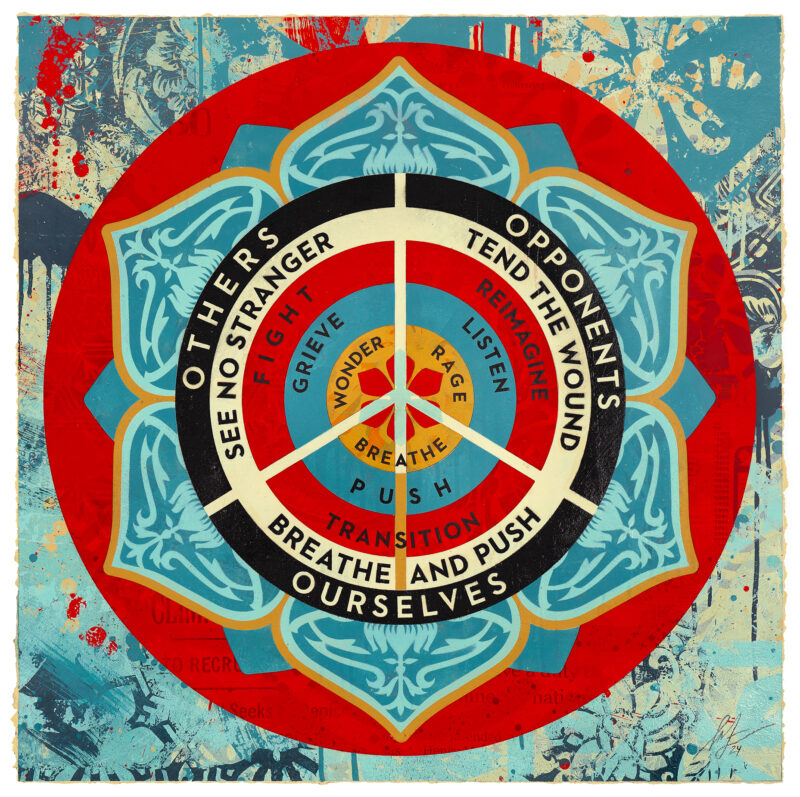 Over the Influence Bangkok is thrilled to present Golden Compass, the newest exhibition by cultural icon Shepard Fairey, a profound exploration of the human struggle to find balance and harmony amidst injustice, righteous rage, and grief. In collaboration with OTI, this exhibition highlights the transformative power of art as a tool to connect with the most compassionate core of our humanity.