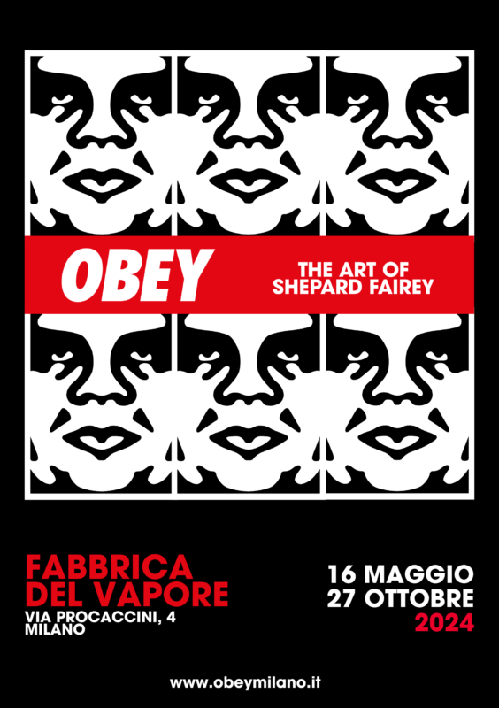 OBEY: The Art of Shepard Fairey brings to Italy for the first time a museum exhibition entirely dedicated to Shepard Fairey (OBEY), one of the most influential and internationally recognized street artists, whose art has shown the evolution of Street Art and its languages. The exhibition, on view from May 16 to 27 October 2024, in the Cattedrale spaces at Fabbrica del Vapore in Milan, offers the public an unprecedented opportunity to explore Obey’s artistic universe.