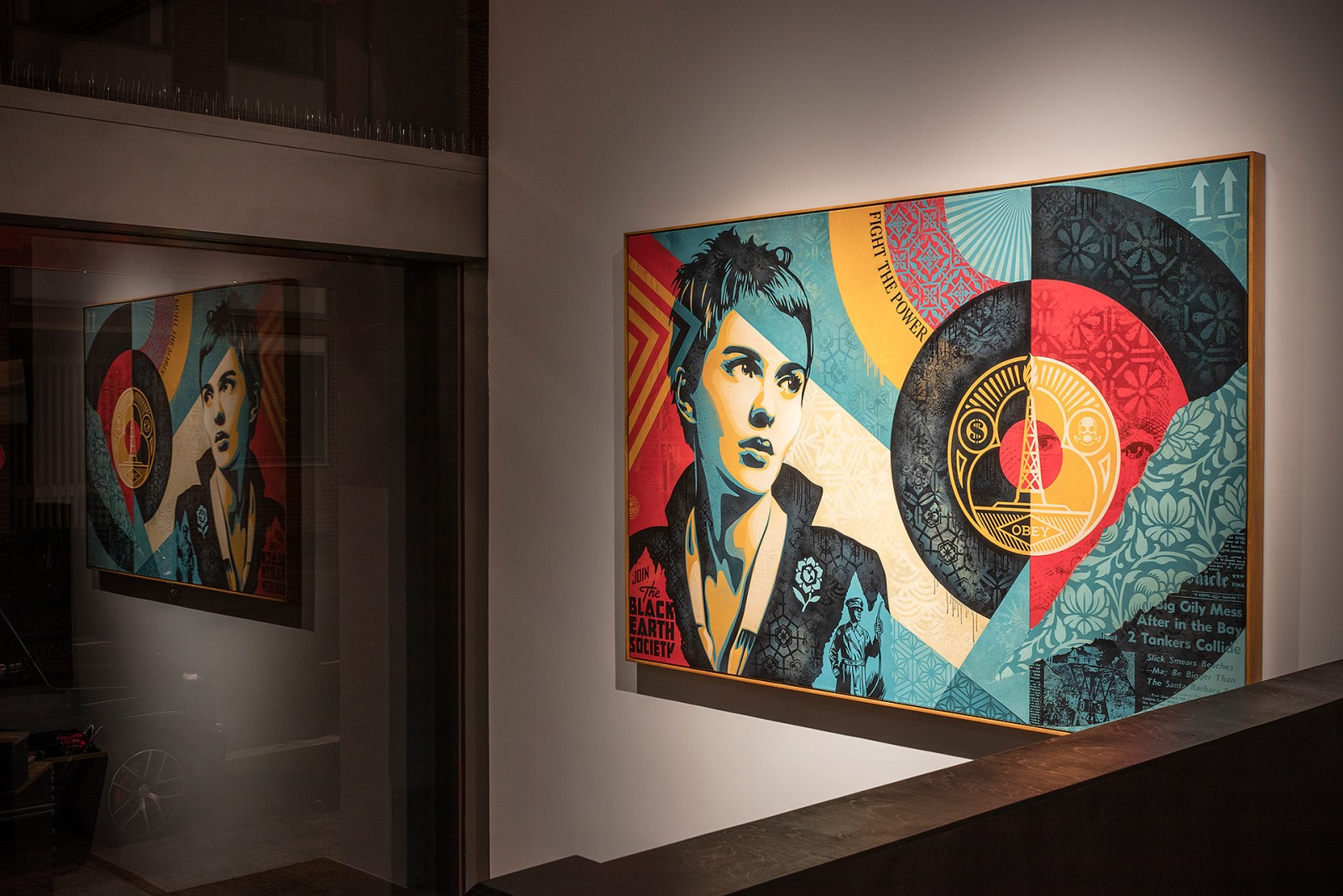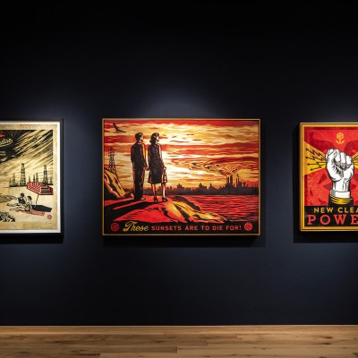 In advance of the New Clear Power show, with the help of Positive Propaganda, I painted a 370-foot wide mural along a stretch of Munich’s city highway, which showcases a series of images relating to the oil industry and the urgency of transitioning to renewable sources of power. I create my art as a catalyst for dialog about important issues, but I believe that a stylistic and conceptual connection between my Munich murals and the content of the New Clear Power exhibition will generate deeper discussion not only about global warming and the financial power of the fossil fuel industries but also about the power of art to clearly articulate healthier paths forward. Thanks to Positive Propaganda & Overrated Art Inc. for making the art show happen! For more updates, please follow @amuseum_munich on Instagram.