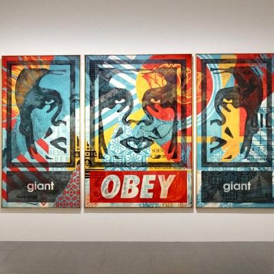 Fairey began building a career as an artist in 1989 while attending the Rhode Island School of Design with the Andre the Giant has a Posse sticker, created using the portrait of the colossal pro-wrestler André René Roussimoff (1946-1993) as a motif. The project eventually evolved into the OBEY Giant campaign and served as the foundation of his artistic productions. Later, he garnered mass popularity and international fame with the release of the portrait poster HOPE in 2008 of then-presidential candidate Barack Obama (b. 1961).