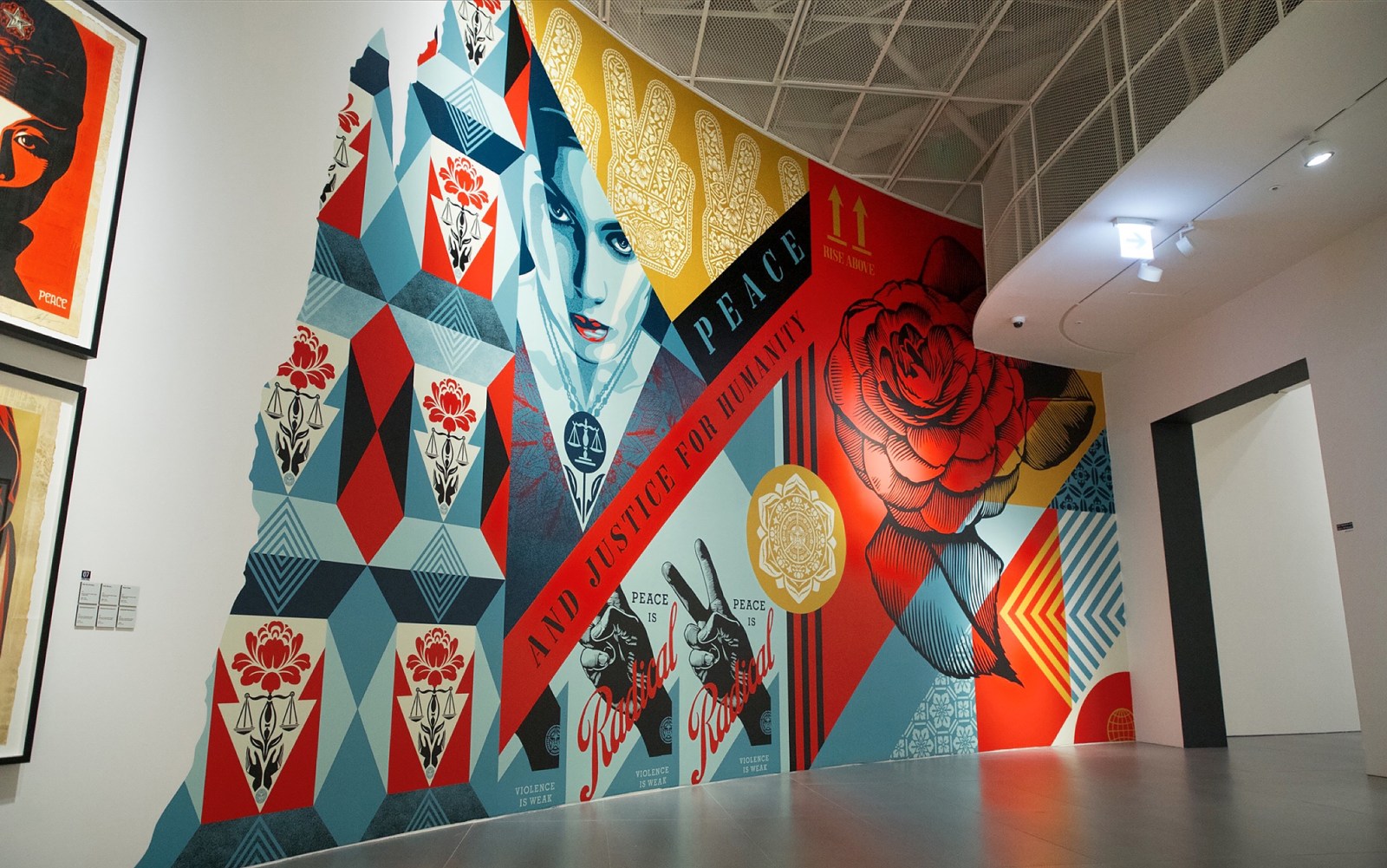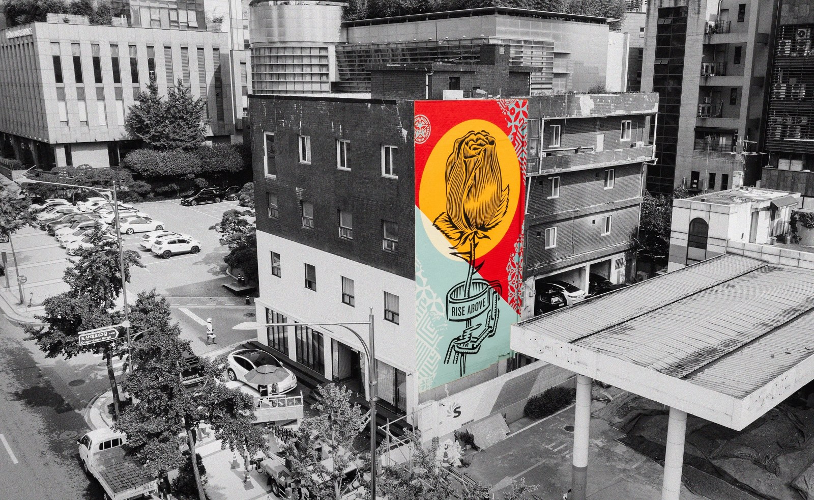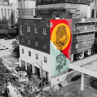This exhibition will include not only OBEY Giant’s early series but also showcase five new murals personally painted by the artist on buildings around the city of Seoul under the theme of hope and the environment, demonstrating Fairey’s artistic world through street art. The street is the root of his work while also being the most effective and attractive location to help convey his messages, reach out to the public, and promote participation. America in the 1980s was going through a time of change, riddled with domestic and international affairs and related social issues. Younger generations began expressing their wariness of an uncertain future in the form of subcultures imbued with the spirit of resistance and defiance. Such things as the freedom-incarnate punk rock, hip hop, skateboard culture, graffiti, and street art came into style. The do-it-yourself (DIY) spirit of punk – which calls for doing things yourself to stand up to the mainstream authority class turning their backs on people – especially left a deep impression on Fairey, manifested from his early works to his recent releases in diverse themes and methods. Icons appearing in his work laden with symbolic concepts and meanings, such as pigeons, roses, lotus flowers, the Earth, and angels, serve as significant vehicles to convey the artist’s messages while completing his idiosyncratic artistic realm.