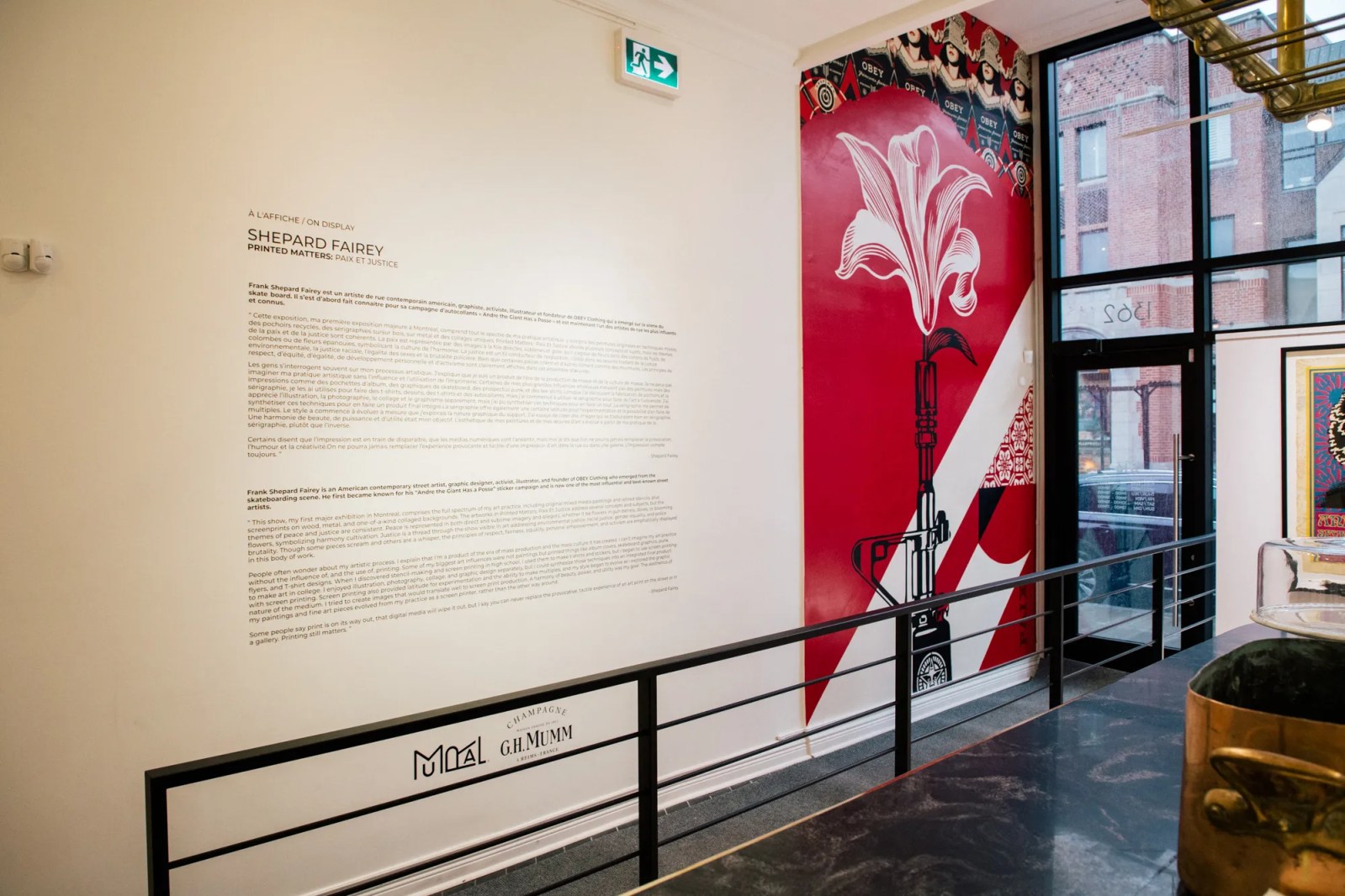This show, my first major exhibition in Montreal, comprises the full spectrum of my art practice, including original mixed media paintings and retired stencils, plus screenprints on wood, metal, and one-of-a-kind collaged backgrounds. The artworks in Printed Matters: Paix Et Justice address several concepts and subjects, but the themes of peace and justice are consistent. Peace is represented in both direct and sublime imagery and allegory, whether it be flowers in gun barrels, doves, or blooming flowers, symbolizing harmony cultivation. Justice is a thread through the show visible in art addressing environmental justice, racial justice, gender equality, and police brutality. Though some pieces scream and others are a whisper, the principles of respect, fairness, equality, personal empowerment, and activism are emphatically displayed in this body of work.