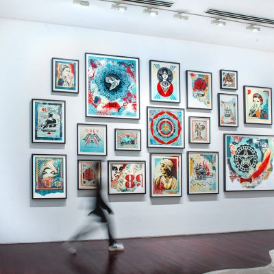 My show Golden Compass, currently open at Over the Influence in Bangkok, explores the human struggle to find balance and harmony while combatting injustice and managing righteous rage and grief. Art is a perfect tool in this quest because it connects to the most compassionate core of our humanity. The concepts in “Golden Compass” serve as guiding principles in our collective journey, guiding us toward self-discovery and contemplation to unlock conscious and subconscious truths. The works in this show offer an interplay of mixed-media collage, bold graphic elements, and type to engage and challenge the viewer on a range of topics. The aim is to create dynamic dialogues that confront complex themes while fostering a direct connection with the audience. My hope is that each piece provides an opportunity for reflection, ideally inspiring subtle or overt calls to action. This exhibition showcases a diverse array of original mixed media paintings, alongside a collection of retired stencils and screenprints rendered on wood and metal, all set against unique collaged backgrounds. It is my hope that these works will inspire viewers to reflect on their own journeys, encouraging them to find their personal compass amid challenging times. Thanks for caring! – S