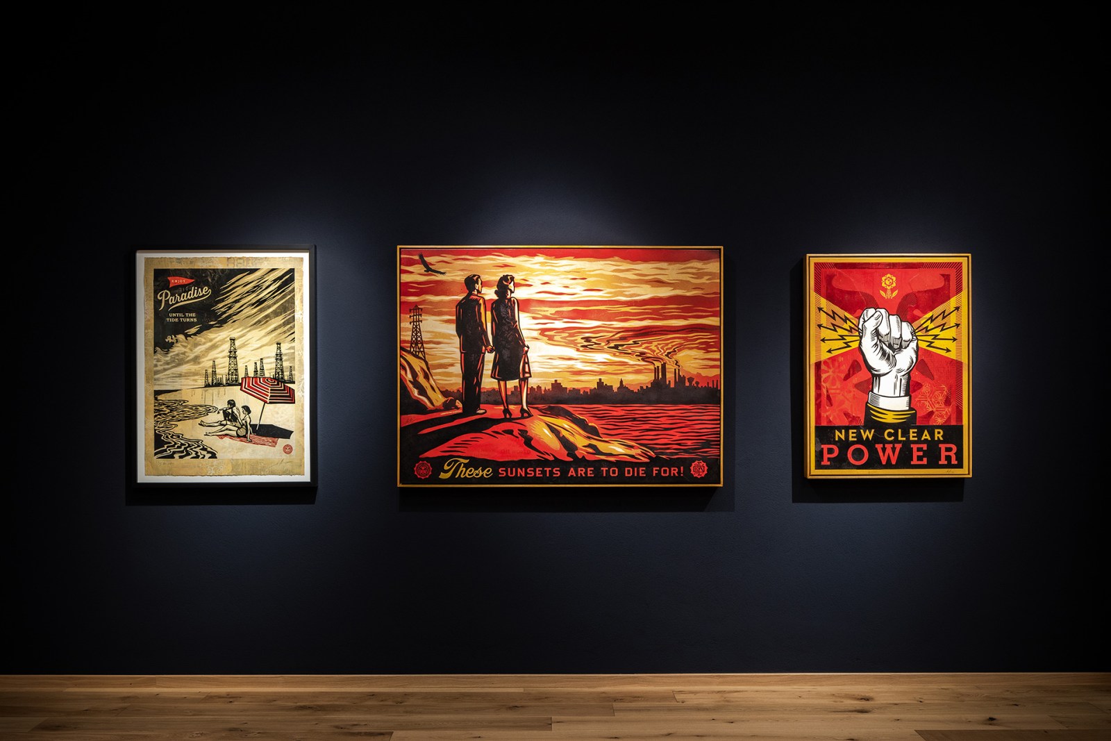 In advance of the New Clear Power show, with the help of Positive Propaganda, I painted a 370-foot wide mural along a stretch of Munich’s city highway, which showcases a series of images relating to the oil industry and the urgency of transitioning to renewable sources of power. I create my art as a catalyst for dialog about important issues, but I believe that a stylistic and conceptual connection between my Munich murals and the content of the New Clear Power exhibition will generate deeper discussion not only about global warming and the financial power of the fossil fuel industries but also about the power of art to clearly articulate healthier paths forward. Thanks to Positive Propaganda & Overrated Art Inc. for making the art show happen! For more updates, please follow @amuseum_munich on Instagram.